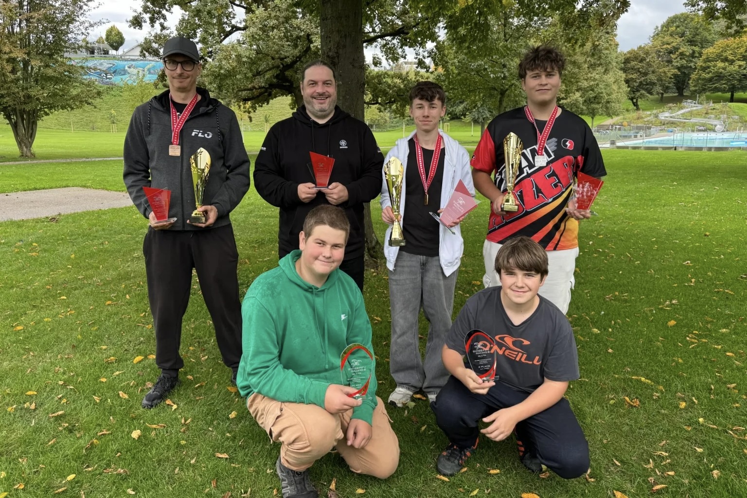 Schweizer Meisterschaft im GPS Scale. Das Podest: 1. Rang Cederic Duss, 2. Rang Daniel Aeberli, 3. Rang Oliver Pfister.