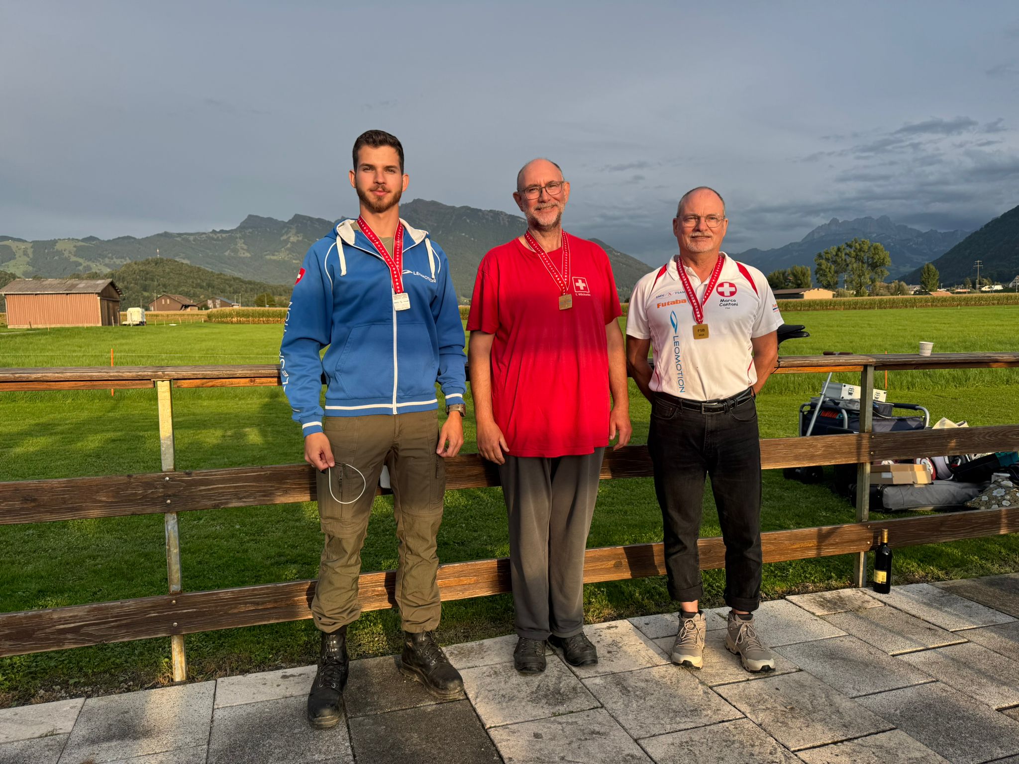 Schweizer Meisterschaft im GPS Scale. Das Podest: 1. Rang Cederic Duss, 2. Rang Daniel Aeberli, 3. Rang Oliver Pfister.