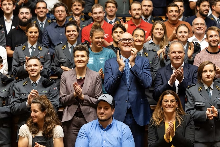 Erfolgreiche Modellflugpiloten wurden vom Bundesrat Martin Pfister im Bundeshaus empfangen