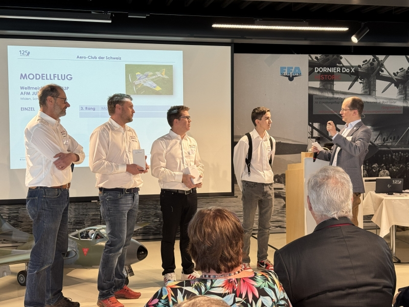 Die DV startete um 10 Uhr mit den üblichen Traktanden und wurde vom Präsidenten zügig durchgeführt. Die Themen gaben keinen Anlass für Diskussionen und wurden einstimmig angenommen. Anschliessend erfolgten die Sportlerehrungen die durch Michael Weinmann moderiert wurden, an der auch dieses Jahr wieder zahlreiche Modellflusportler geehrt wurden wie aus der Bildergalerie entnommen werden kann. Ebenfalls wurden die Ballonfahrer und Fallschirmspringer geehrt und ausgezeichnet für ihre sportlichen Leistungen im 2025. Unser lanjähriger Generalsekretär des Aero - Club Yves Burkhard wurde für seine vielen Aktivitäten zu Gunsten der Aviatik mit dem Paul Tissandier Diplom ausgezeichnet für dessen Übergabe extra zwei Ranghohe Vorstandsmitglieder der FAI (Fédération Aéronautique International) angereist waren.
